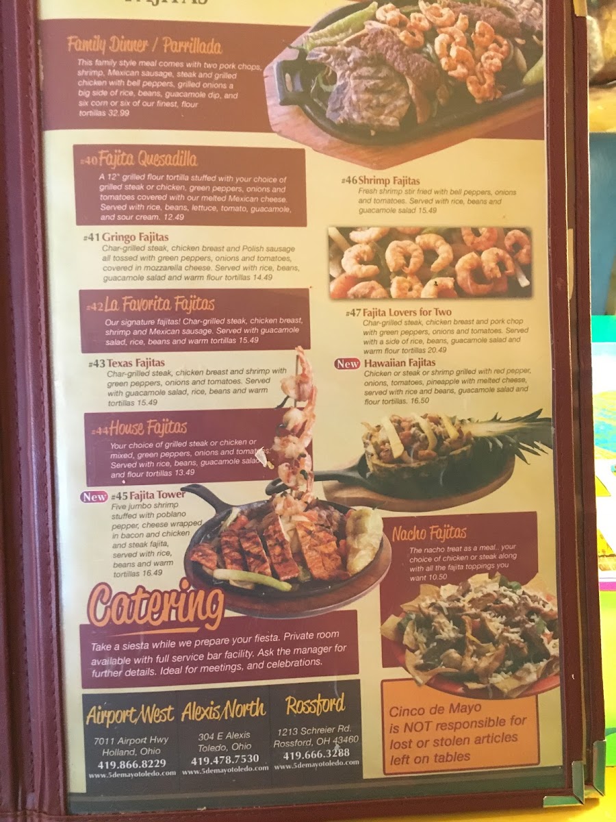 Welcome to Cinco De Mayo - Holland, a vibrant destination for authentic Mexican cuisine located in the heart of Holland, Ohio. Experience a delightful array of appetizers like the Cheese Quesadillas and TableSide Guacamole, setting the stage for flavor. Dive into their seafood offerings, featuring the savory Camarones Acapulco and indulgent fish or shrimp tacos, ensuring every bite resonates with zest.